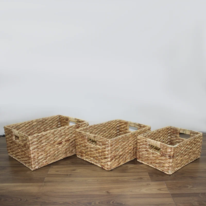 Vietnam Factory High Quality Natural Woven Storage Baskets Set 3 Rectangle Water Hyacinth Collapsible Boxes Kitchen Laundry Use