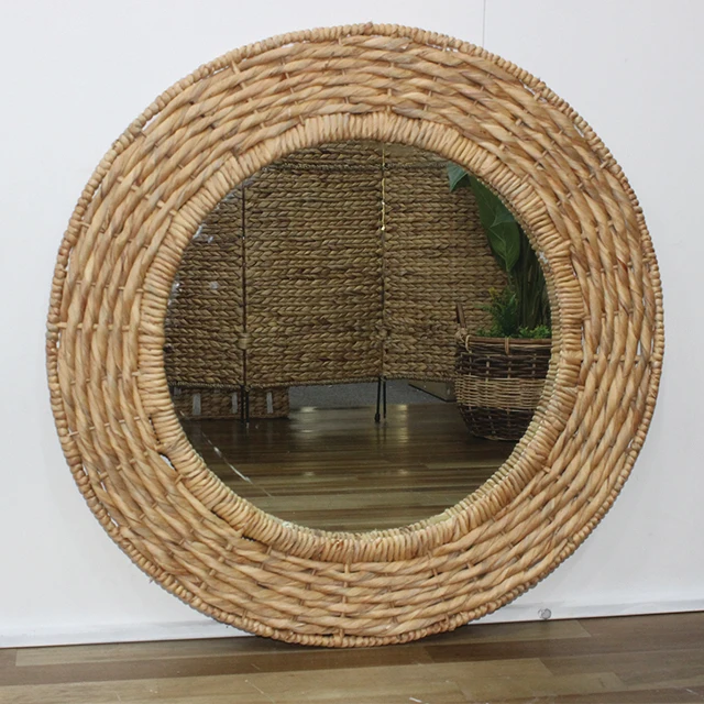 Artex Dong Thap Factory Handmade Round Wall Mirror with Water Hyacinth Woven Frame Natural Decorative Design Vietnam