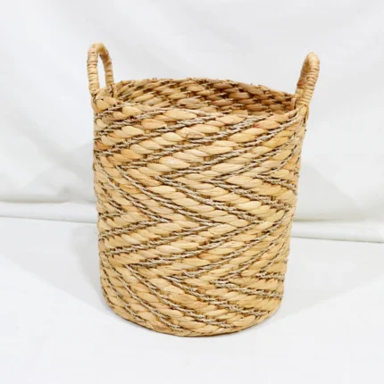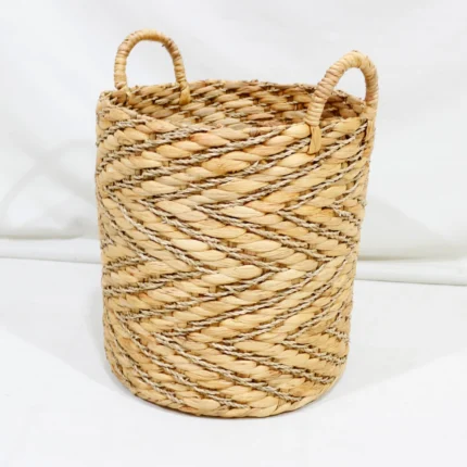 Wholesale 100% Natural Handmade Wicker Storage Basket Round Water Hyacinth Seagrass Mix High Quality Hamper for Home Kitchen Use