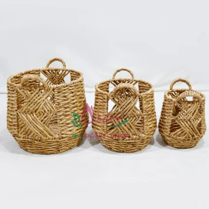 Good Price Durable Metal Frame Round Hand-woven Water Hyacinth Storage Basket Set USA Style Woven Storage Basket1