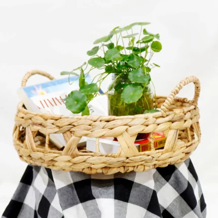 Hand-Woven Large Water Hyacinth Tray Wood Storage Trays With Handles Reasonably Priced for Food Handcrafted Natural Material