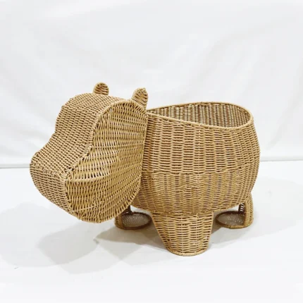 Artex Dong Thap Handmade Hippo Storage Basket Woven Animal Shaped Organizer Bin for Toys Nursery and Kids Room Decor