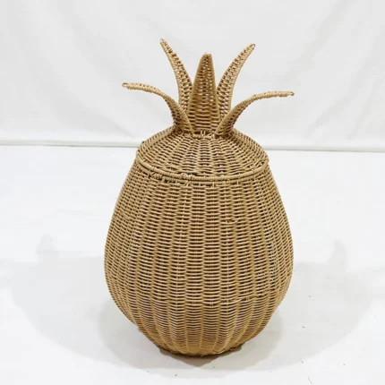 Artex Dong Thap Handmade Pineapple Shaped Rattan Basket with Lid Decorative Storage Bin for Toys Laundry or Home Use