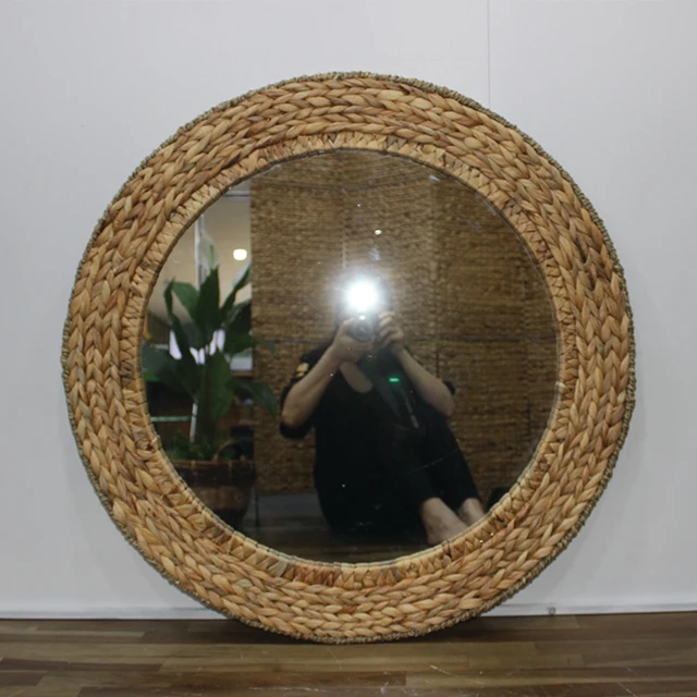 Artex Dong Thap Factory Handmade Round Wall Mirror with Water Hyacinth Woven Frame Natural Decorative Design Vietnam