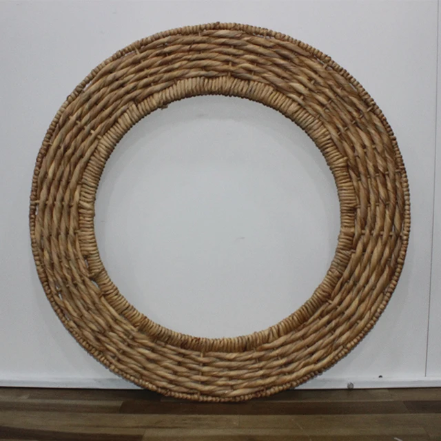Artex Dong Thap Factory Handmade Rustic Round Wall Mirror with Water Hyacinth Frame Decorative for Living Room Use