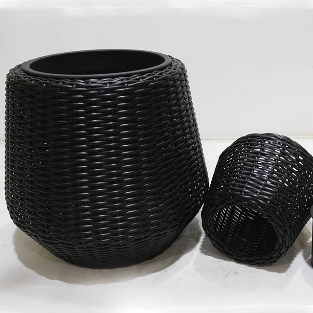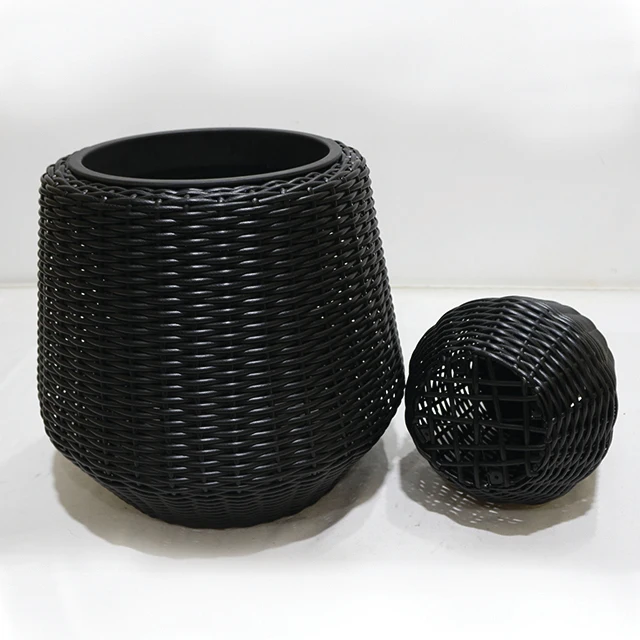 Artex Dong Thap Factory Modern Woven Rattan Planter Set Decorative Black Pots for Garden Balcony and Living Room Use