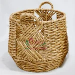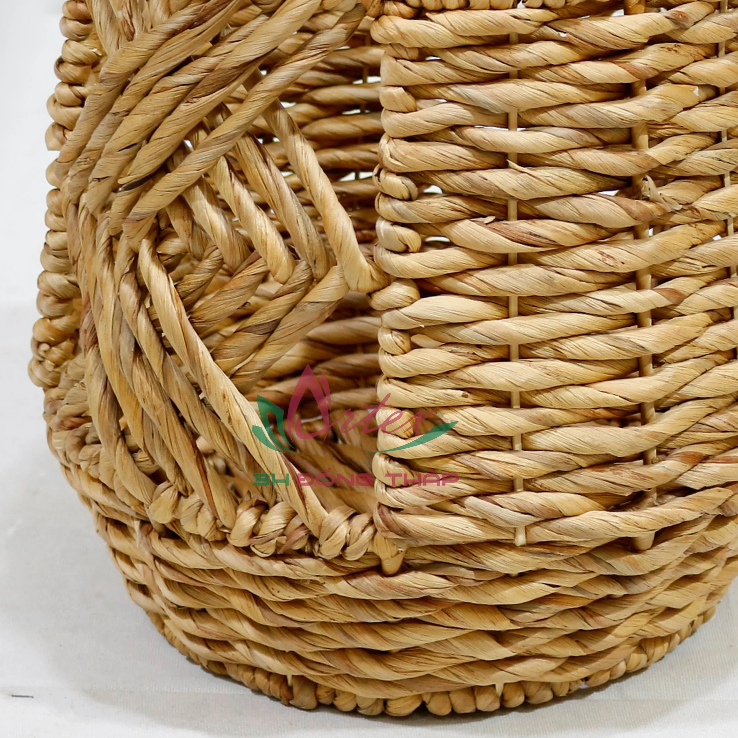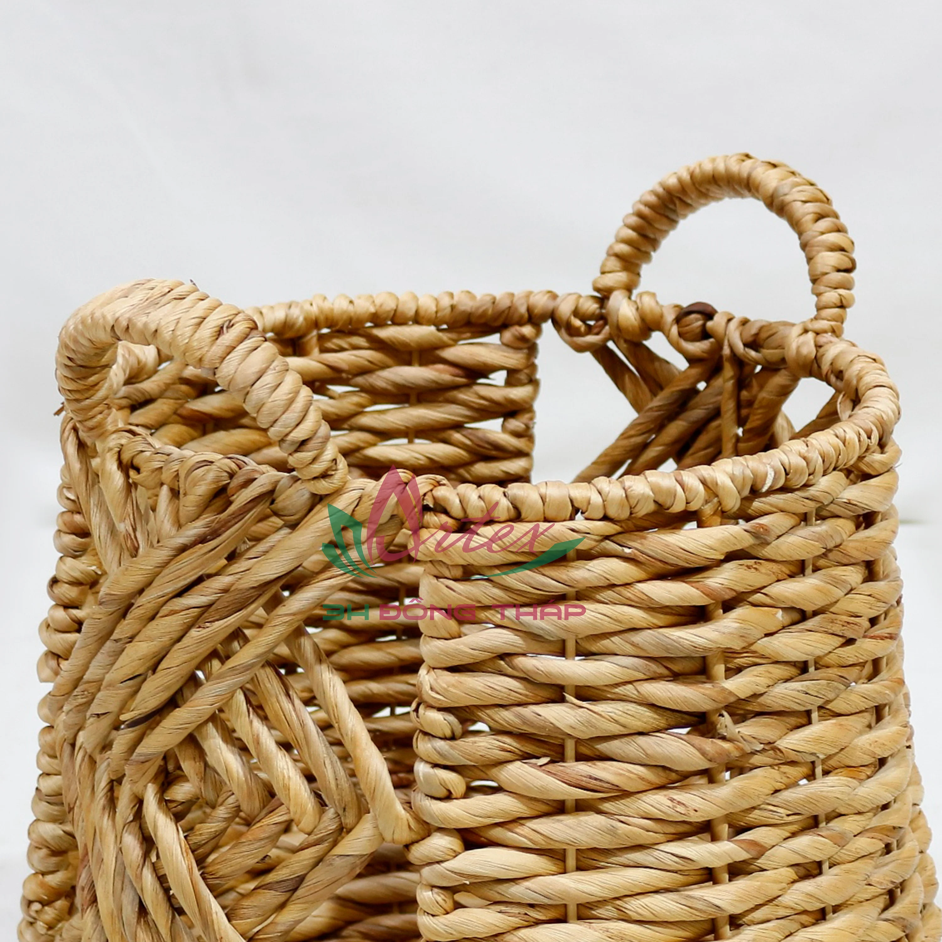 Artex Dong Thap Handwoven Water Hyacinth Organizer Basket with Twisted Edge and Side Handles for Home Office
