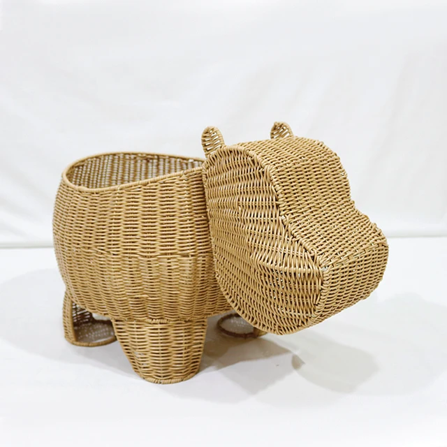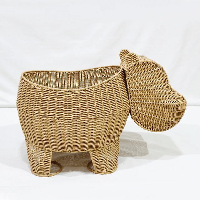 Artex Dong Thap Handmade Hippo Storage Basket Woven Animal Shaped Organizer Bin for Toys Nursery and Kids Room Decor