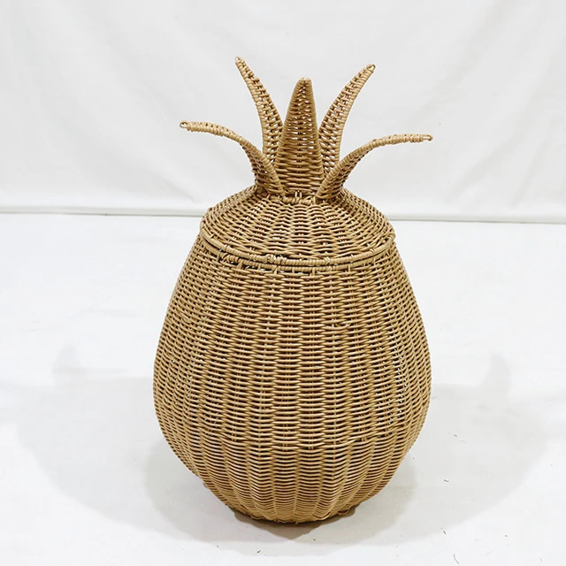 Artex Dong Thap Handmade Pineapple Shaped Rattan Basket with Lid Decorative Storage Bin for Toys Laundry or Home Use
