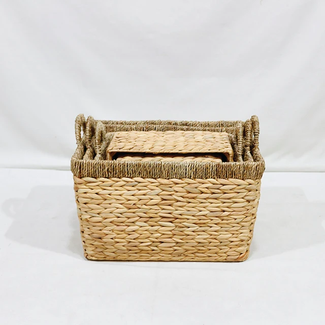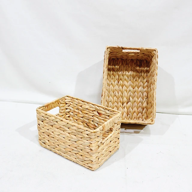 Artex Dong Thap Handmade Rectangular Water Hyacinth Basket with Double Handles for Picnic Storage and Home Display
