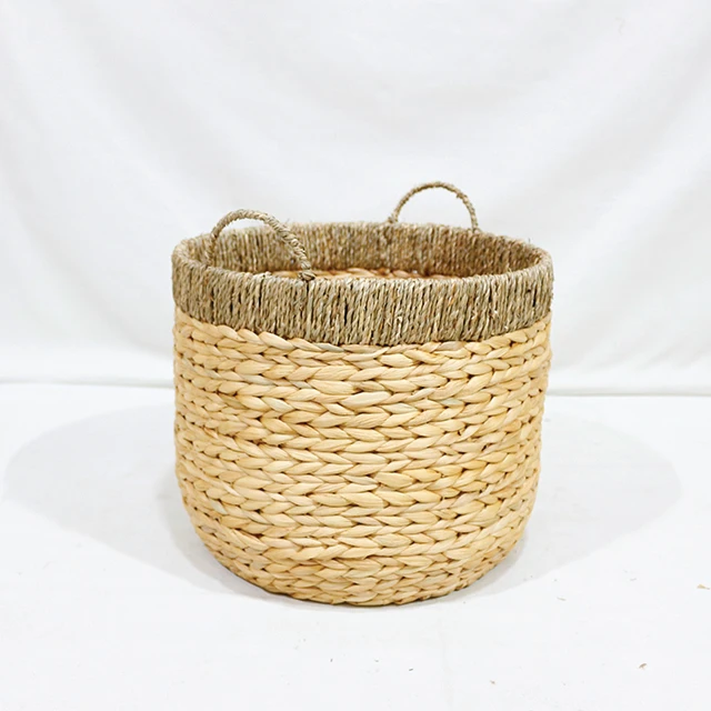 Natural Water Hyacinth Plant Pot Handmade Woven Planter Basket