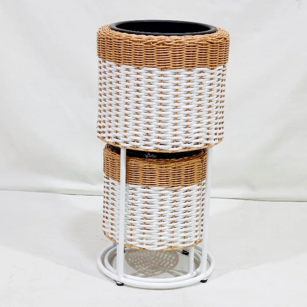 Handwoven Poly Rattan Planter Durable Deco-26834110