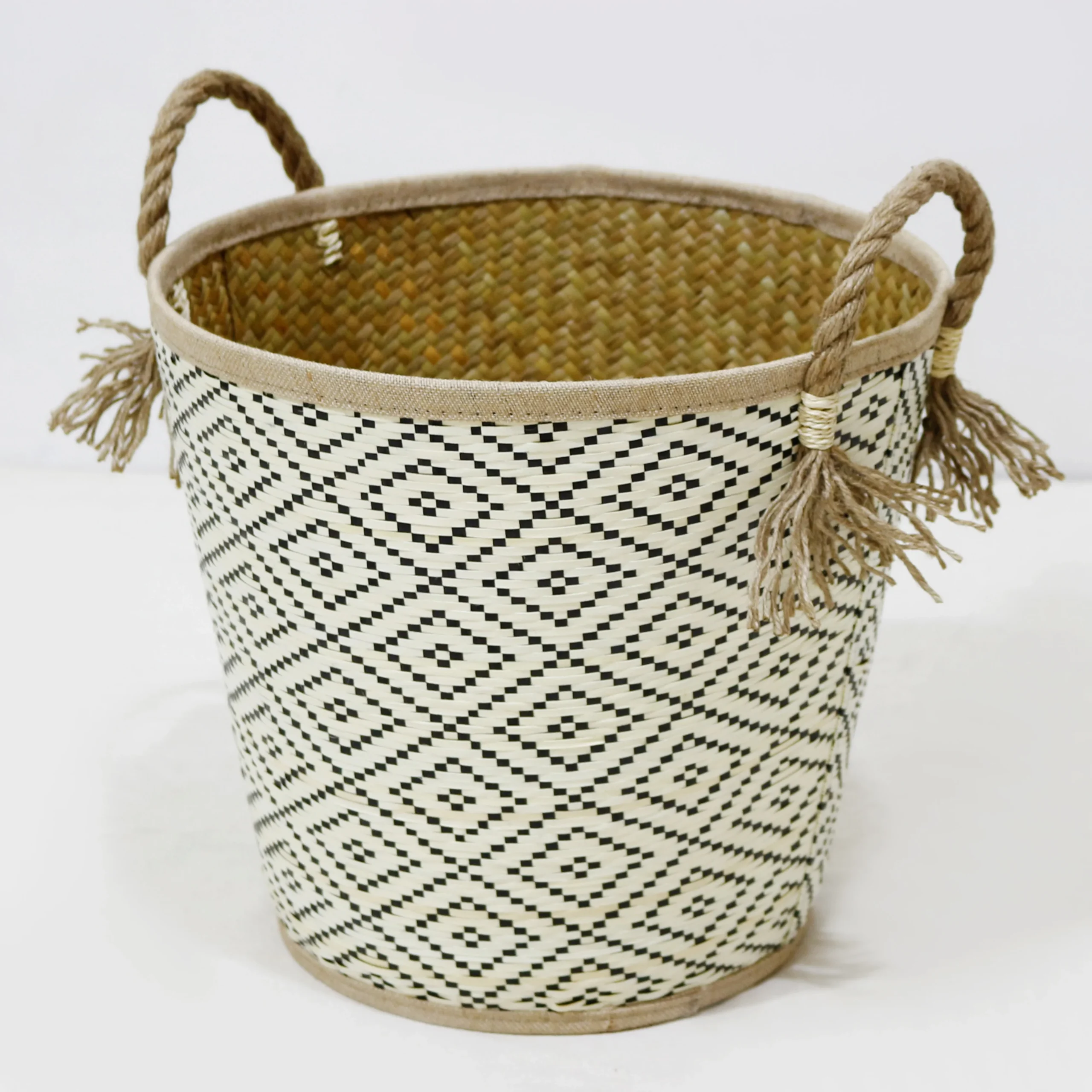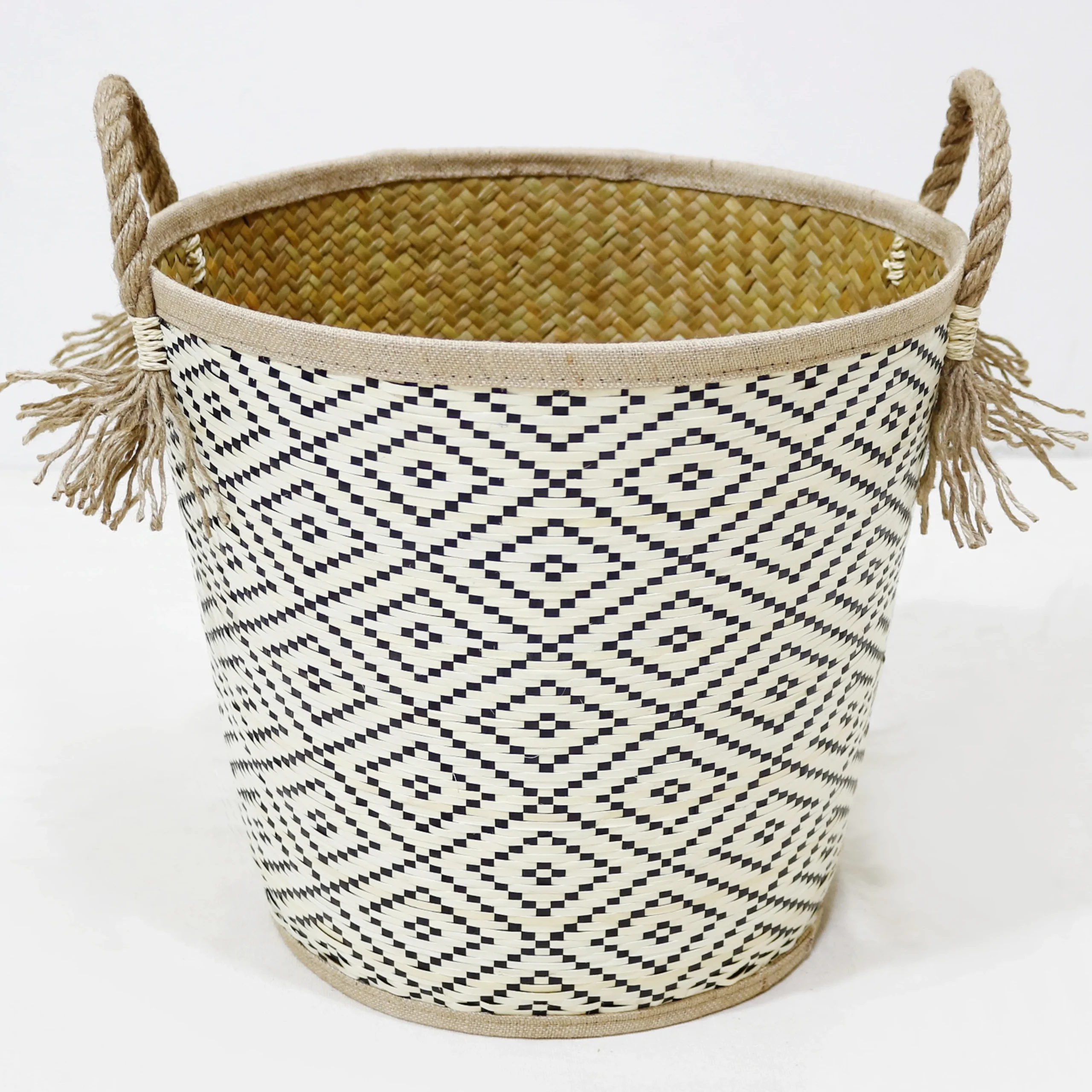 Palm Leaf Basket Handmade Natural Hamper Round Storage Basket Beautiful Design for Decor Home Hotel
